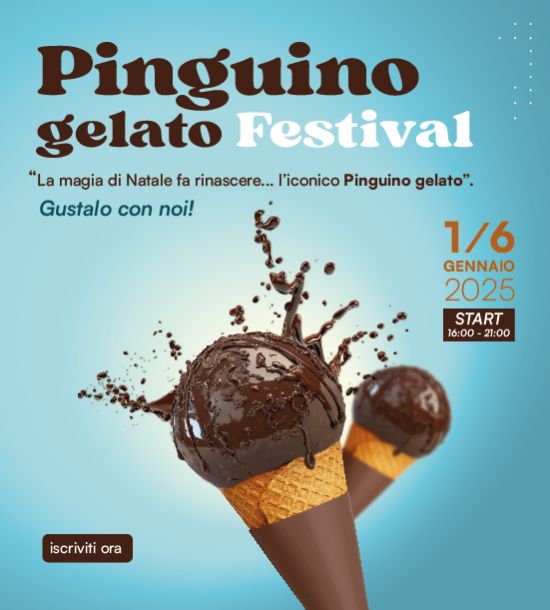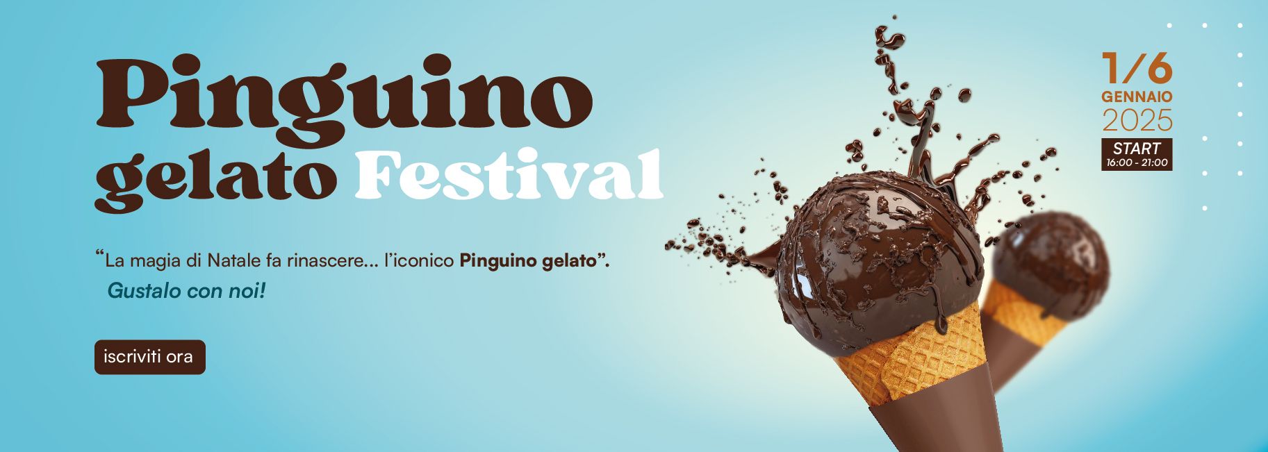 Benvenuti al Pinguino gelato festival dal 1 al 6 gennaio 2025, settimana dedicata all'iconico Pinguino gelato con la partecipazione di Massimo Malinconico.